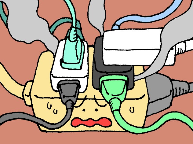 たとえば、 被覆が傷んだUSB充電ケーブルを